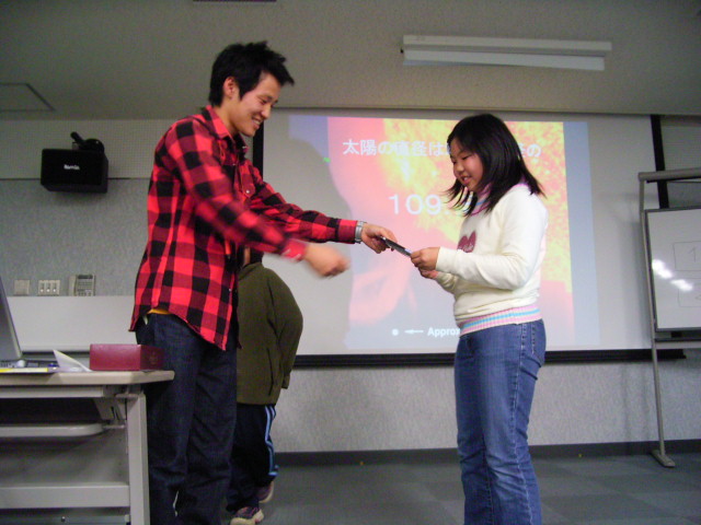 13日は天気に恵まれ、外で観望することができました。とっても寒かったけど、みんな元気に望遠鏡をのぞき込んでました。星の名前や星座の名前、星座の形、二重星、いろんなことを知ることができました。これから星を見るのが楽しくなりますね。